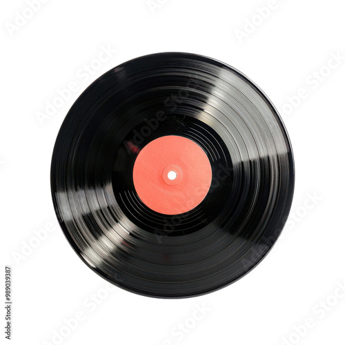 Fototapeta premium PNG Vintage vinyl record with a red label, isolated on a white background.