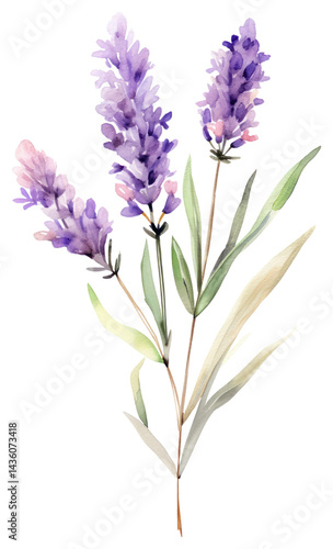 © Rawpixel.com, Naklejka premium PNG Watercolor lavender flower blossom plant