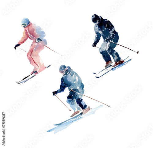 Fototapeta premium PNG Watercolor skiers in motion.