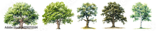 © Rawpixel.com, Fototapeta premium PNG Watercolor tree set on transparent background