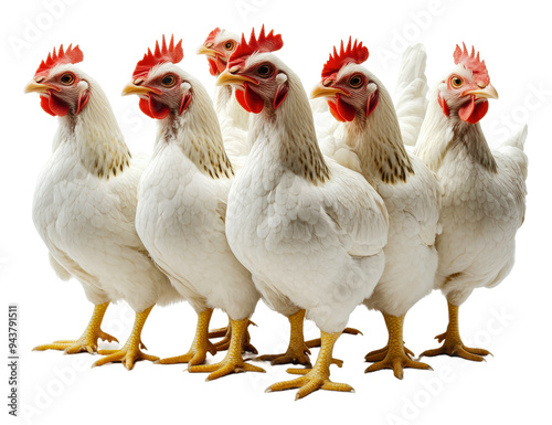 © Mr. Png, Fototapeta premium PNG White chickens gathered together in a barnyard