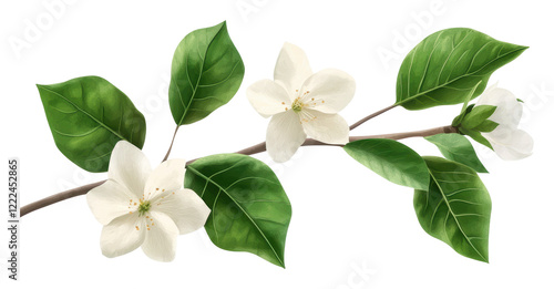 © BraveSpirit, Obraz premium PNG White flowers and green leaves outdoors
