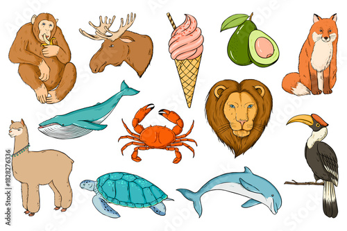 © Rawpixel.com, Obraz premium Png wild life sticker set colorful clipart