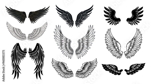 © Rawpixel.com, Fototapeta premium PNG wing illustration element set, transparent background