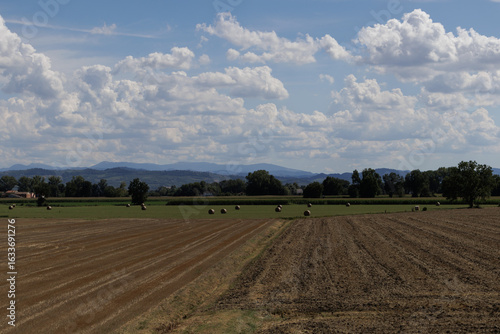 Obraz premium Po Valley landscape trees flowers sky horizon sun intense summer