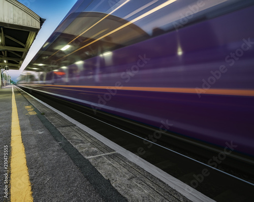 Obraz premium Pociąg pędzący przez stację w Wielkiej Brytanii