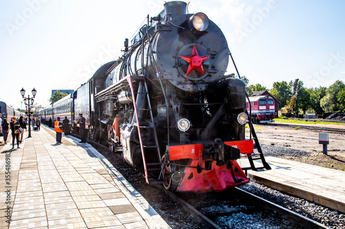 © froland83, Obraz premium Pociąg retro Ruskealsky express w Karelii w Rosji