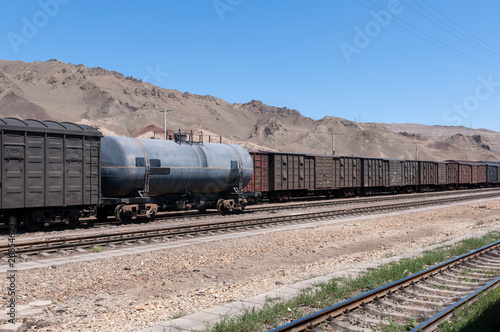 © Tiago Fernandez, Naklejka premium Pociąg towarowy w Xinjinang w Chinach