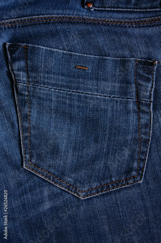 © Volha Drabovich, Fototapeta premium Pocket of dark blue jeans.