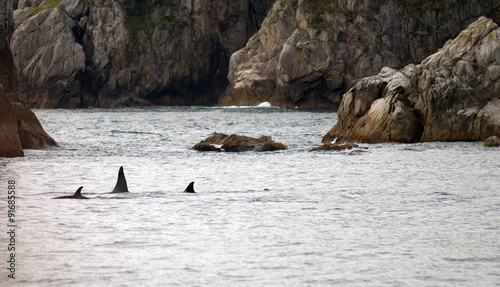 Naklejka premium Pod Orca Whales North Pacific Ocean Sea Life Marine Mammal