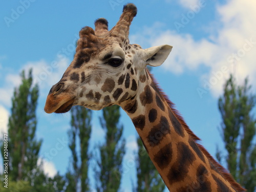 Naklejka premium Podejrzliwy wzrok żyrafy, szyja długości wysokości drzew