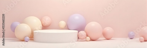 © Samir, Fototapeta premium Podium with Pastel Balloons in Pink, Cream, and Lavender