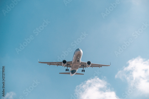 © Hairem, Obraz premium Podróż samolotem, koncepcja lotnictwa. Samolot na niebieskim niebie