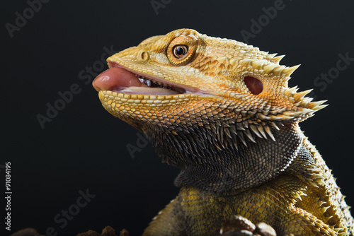 © David.C.Azor, Naklejka premium Pogona opening mouth on a black background.