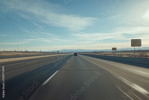 Fototapeta premium Point-of-view from driving car on highway capturing motion. AI generated...