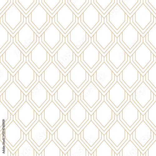 © Olga, Fototapeta premium Pointed linear scale grid seamless pattern. Golden geometric scales in art deco style. Thin gold line luxury background.