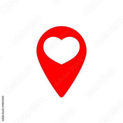 Fototapeta premium Pointer with heart icon, flat graphic design template, symbol for map,...