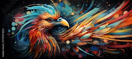 © Karepe, Obraz premium Pointillist grunge design of griffin with abstract dotted pattern, ,generative AI