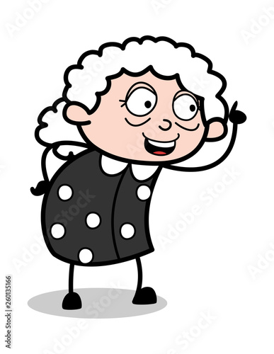 Obraz premium Pointing While Talking - Old Cartoon Granny Vector Illustration