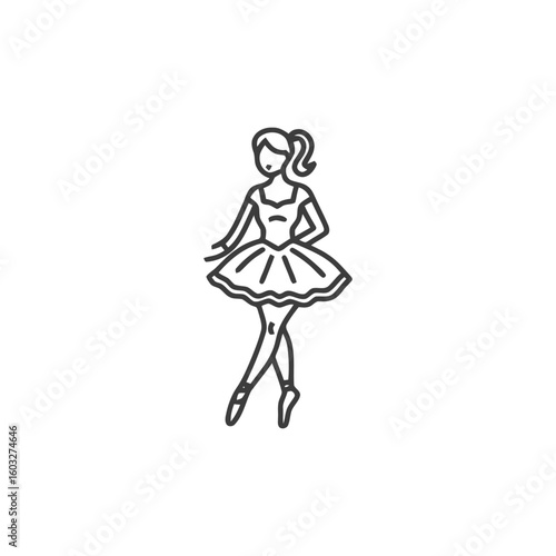 Fototapeta premium Poised Ballerina in a Tutu, Elegant Minimalist Line Art Icon