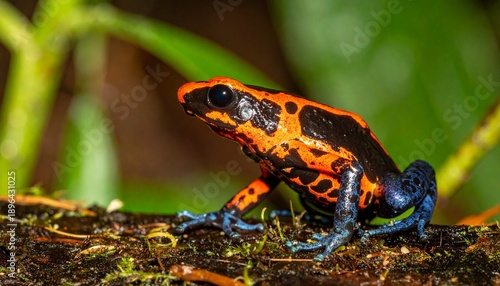© Deswan, Fototapeta premium Poison Dart Frog on Tropical Rainforest Leaf