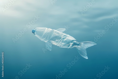 © Estebian Darger, Naklejka premium Poisson en bouteille plastique flottant sous l'eau