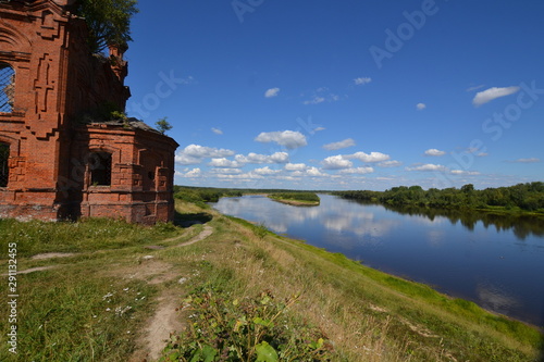 © lozinsky_s_v, Fototapeta premium Pokcha ancient settlement with the Annunciation Cathedral on the steep bank of the Colva River