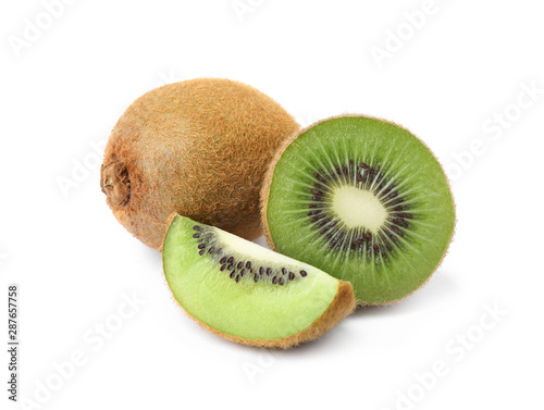 Obraz premium Pokrojone i całe świeże kiwi na białym tle