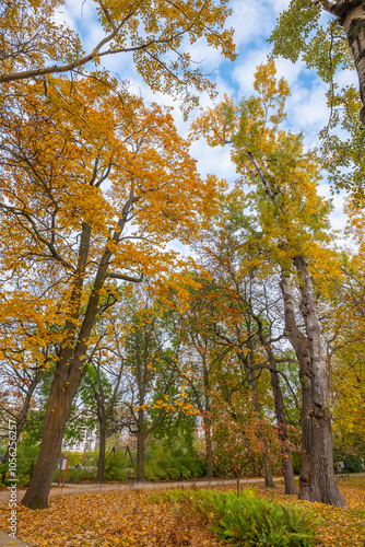 Fototapeta premium Poland capital city Warsaw Royal Lazienki Park trees decorated with autumn...