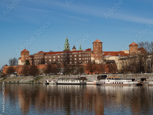 © Beata, Fototapeta premium 31/01/2021 - Poland/Cracow - view over Vistula River and Wawel Castle, the biggest attraction of Cracow. Winter time