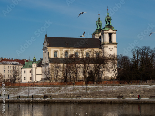 © Beata, Fototapeta premium Poland, Cracow - view over Vistula Riverbanks and St. Michael the Archangel and St. Stanisław Church. Winter time.