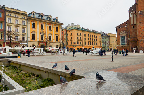 Obraz premium Poland. Krakow. Houses and street of the city of Krakow. Cityscape. February...