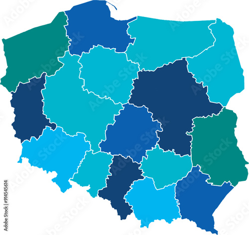 © WALDIR, Fototapeta premium POLAND MAP WITH ADMINISTRATIVE DIVISIONS AND PROVINCES