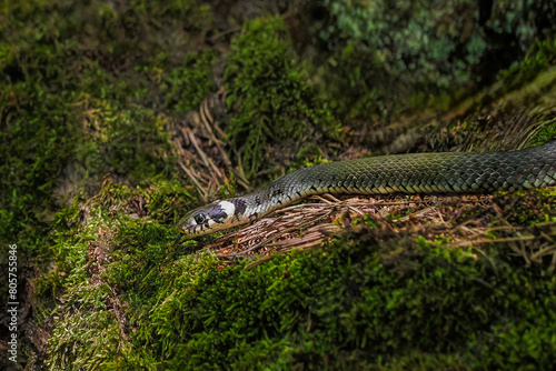 Naklejka premium Poland, snake Natrix natrix - a species of non-venomous snake from the...