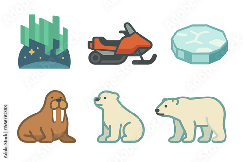 Obraz premium Polar adventure featuring wildlife and winter activities in a snowy landscape...