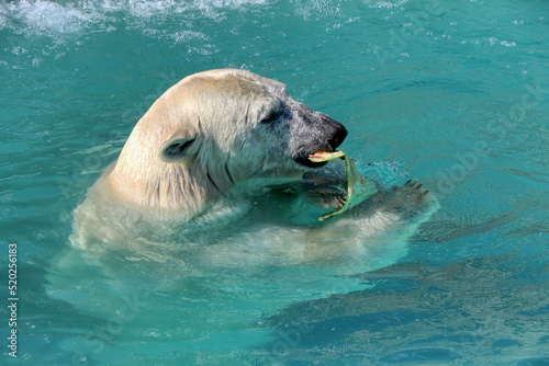 © Massimo Todaro, Fototapeta premium Polar bear in the water eats the bark of a watermelon