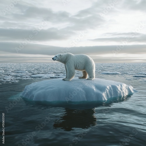 © elmyra, Naklejka premium Polar bear on melting ice