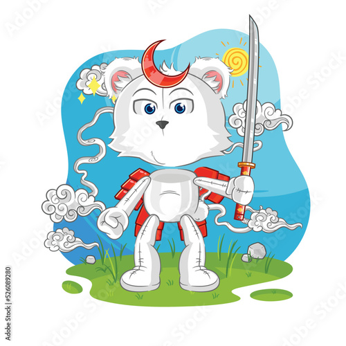 Fototapeta premium polar bear samurai cartoon. cartoon mascot vector