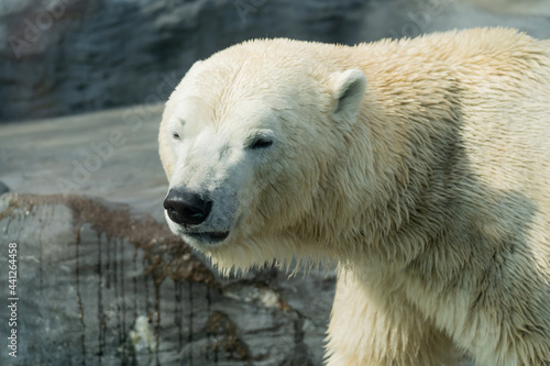 Fototapeta premium Polar bear - ursus maritimus - close up view on animal in the enclosure