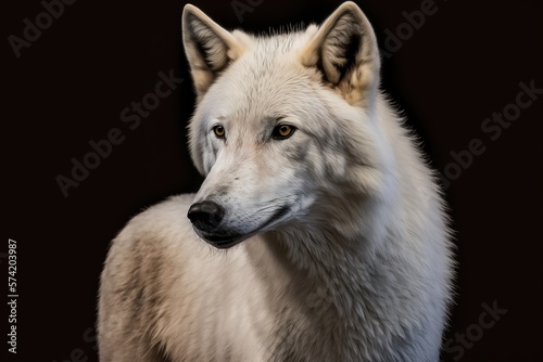 © Anna, Fototapeta premium Polar wolf portrait on black background. AI generative.