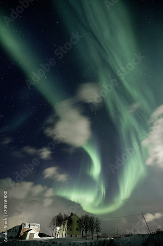 © kenopictures, Fototapeta premium Polarlicher in Norwegen, Nordlichter auf Lofoten Abenteuer Urlaub im Winter