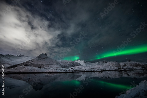 © EinBlick, Naklejka premium Polarlicht über einem Fjord