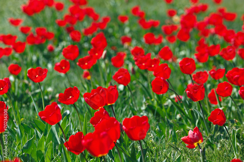 © lexuss, Obraz premium Pole czerwonych tulipanów