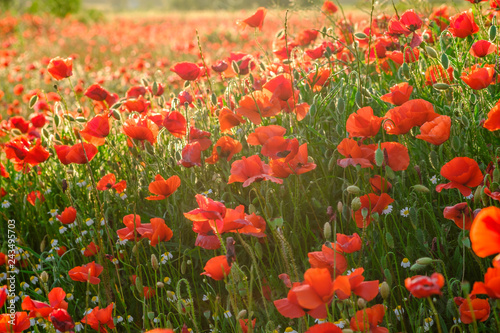 Fototapeta premium Pole makowe, zachód słońca. Prowansja, Francja.