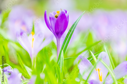 Fototapeta premium Pole z krokusami w dzikiej przyrodzie