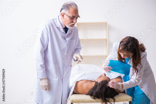 © Elnur, Fototapeta premium Police coroner examining dead body corpse in morgue