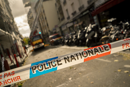 Obraz premium "police nationale" ribbon , police tape , investigation scene