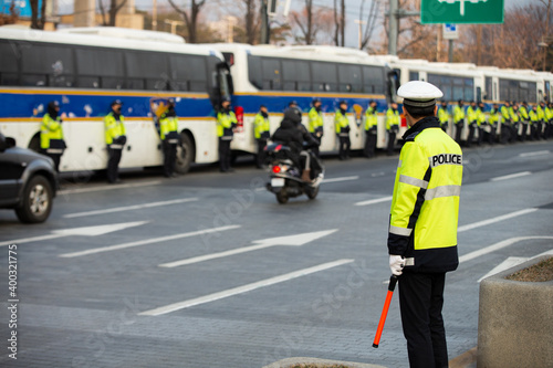 Obraz premium Police officers during an anti-government demonstration
