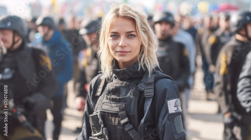 Fototapeta premium police officers in full gear and uniform with safety protective gear and...