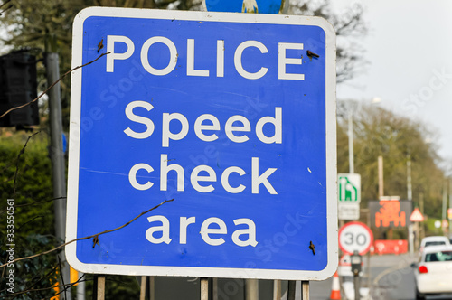 © Stephen, Obraz premium Police speed check area sign at major roadworks.